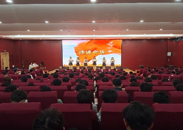 本次活动分为五个环节:我看、我诵、我讲、我议、我唱。活动伊始,大家一起观看《朗读者》听前辈杨元喜讲述自己的成长历程,最后他朗诵了一段《人类群星闪耀时》送给广大青年,让青年学子备受鼓舞。一起欣赏了一支国风舞蹈《芳华慢》,主持人为在场观众讲解《中国少年说》,大家一起欣赏了激情澎湃的歌曲舞台表演,诗歌朗诵《诗诵中华》,抑扬顿挫地表达了对青年的期盼与祝福。由学生代表为大家展示以“青春向党百年路,昂首奋进新时代”为主题的PPT,让学生们了解了前辈们艰苦奋斗的革命历程,主持人以“青年”为关键词和现场的同学互谈感悟。奋斗是青春最亮丽的底色,行动是青年最有效的磨砺。新时代青年应心系祖国,志存高远,立足实践,脚踏实地,在奋斗中创造精彩人生,为中华民族伟大复兴贡献出自己的青春和力量。活动最后由同学们一起合唱《我和我的祖国》,表达对祖国的赞美与祝愿。