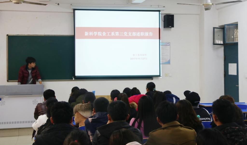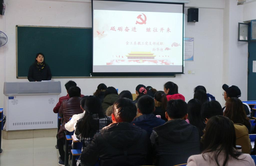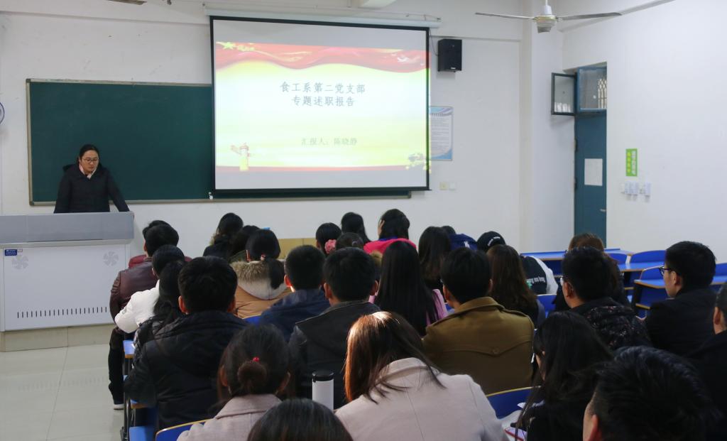 为深入贯彻落实学习党的十九大精神和新时代中国特色社会主义思想,进一步推动全面从严治党向基层延伸,1130日下午,食工系党总支在12号教学楼521教室举行党支部书记述职报告及评议工作,食工系全体教工党员和学生党员参加了会议。