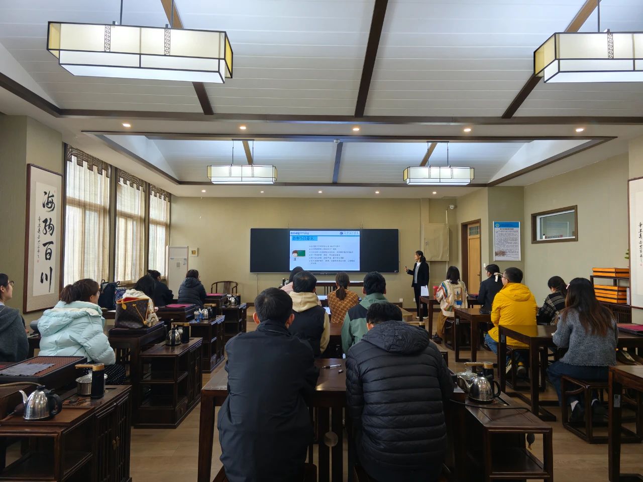 2024年11月15日,成人网址食品工程学院于综合实验楼茶艺实训室成功举办旅游教学PPT评比大赛。此次比赛由张金岭教授担任评委、旅游管理教研室和酒店管理教研室的全体教师参加,大赛旨在提升教师的教学技能,促进教学方法的创新与技术融合,提升教学质量。