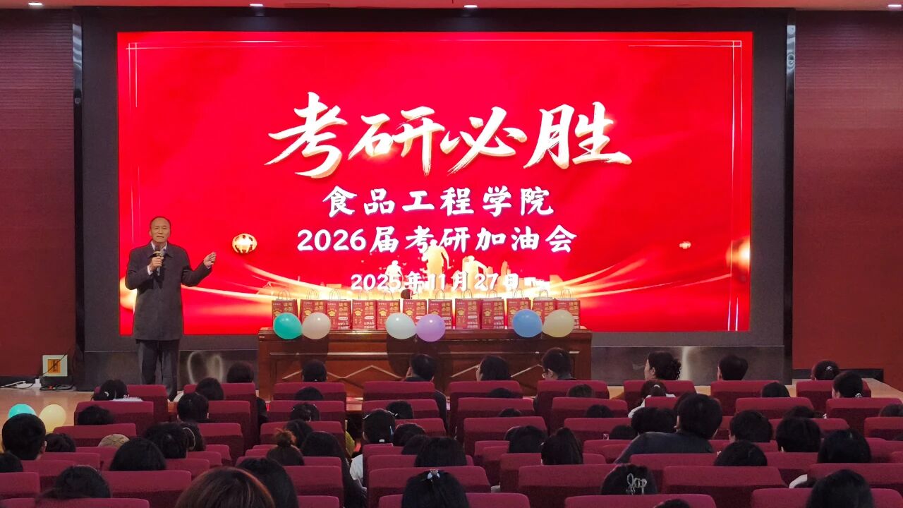 为在考研关键节点给学子们注入温暖力量、坚定备考信心,11月27日,食品工程学院在学院楼报告厅举办“研途送暖·逐梦同行”考研冲刺动员会。学院院长马汉军、副院长孙华迪、党委副书记张晓娜,全体毕业生辅导员和考研学子齐聚一堂,围绕备考策略、心理调适、目标冲刺等展开深入交流,现场气氛热烈而温馨,为即将奔赴考场的学子们注入坚定信心与澎湃动力。