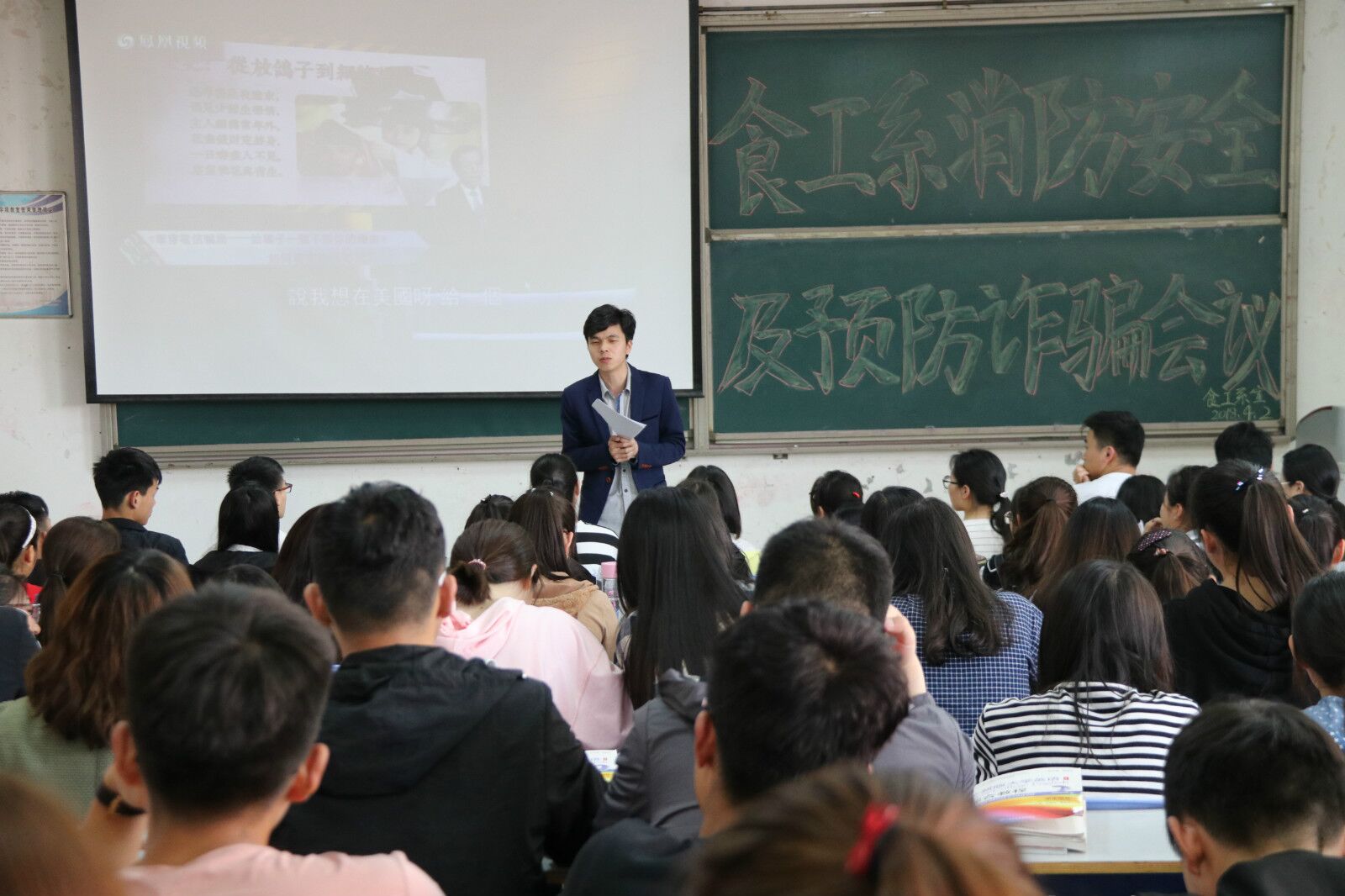 为了防范网络电信诈骗,普及消防安全知识,提高同学们预防诈骗的安全意识,我系于42日上午11点在12#合八举行消防安全及预防诈骗会议。参加本次会议的有刘双华老师、食工系16级班委和17级全体学生。