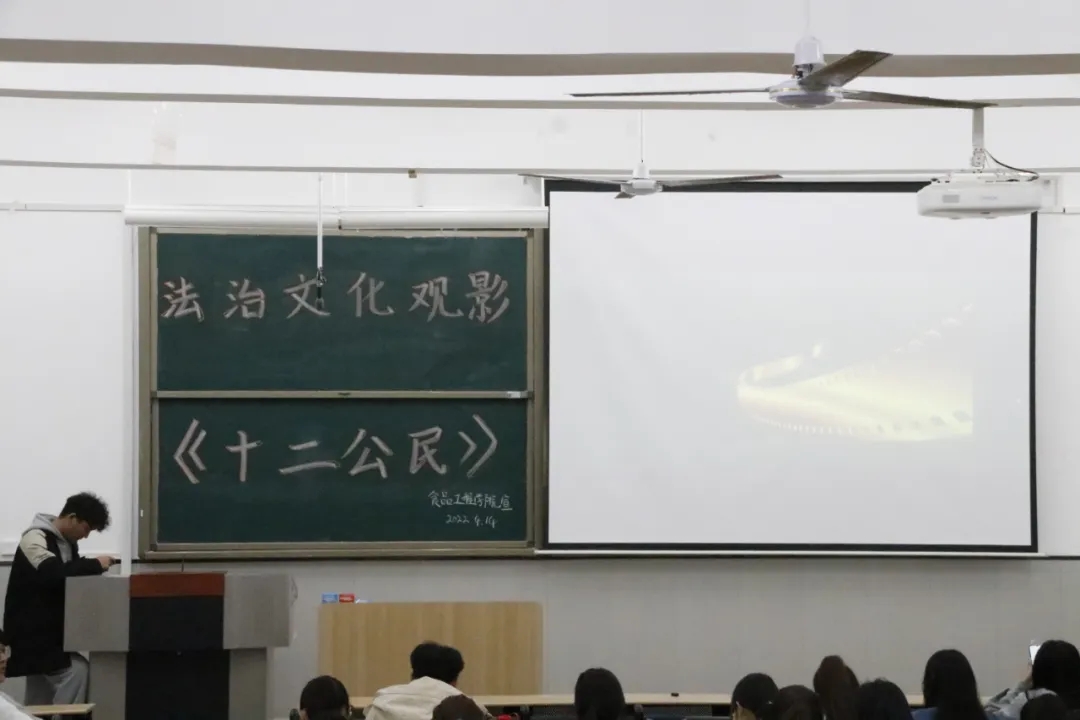 食品工程学院于4月14日晚上19:30在教学楼1-207、209进行法治文化观影活动。