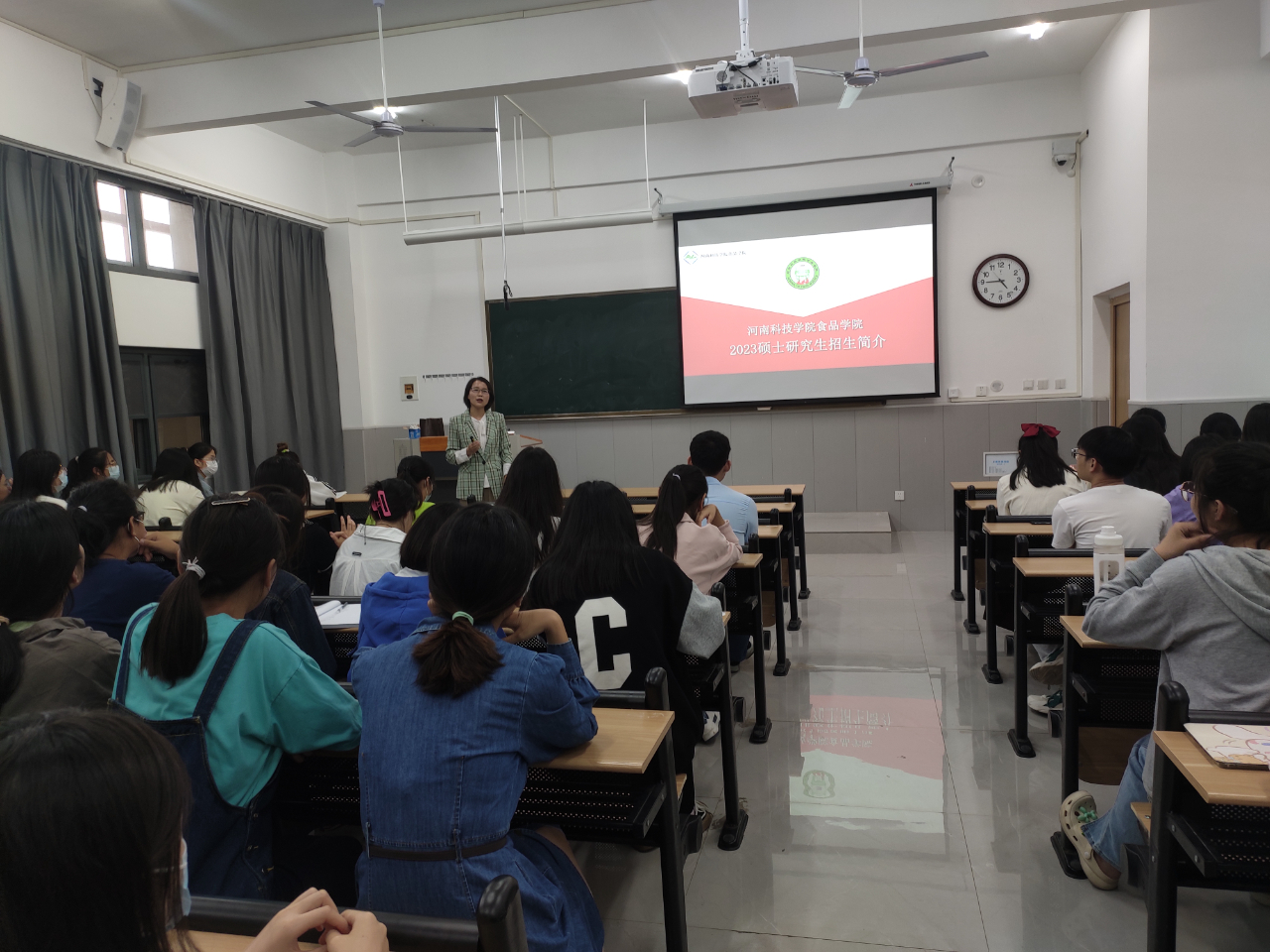 讲座中,副院长文平根据河南科技学院食品学院发展历史历程,详细介绍了食品学院研究生专业设置、科研平台、师资队伍及其研究方向等,也介绍了近三年学院重大科研项目取得的卓越成绩。为同学们全面了解食品学院研究生专业设置,较好选择考研方向,起到了重要的作用。讲座结束后,对于同学们积极咨询的问题,文平结合自身对研究生管理工作的丰富经验,悉心解答了学生们提出的各类考研问题,为备考学生提出了许多宝贵建议。