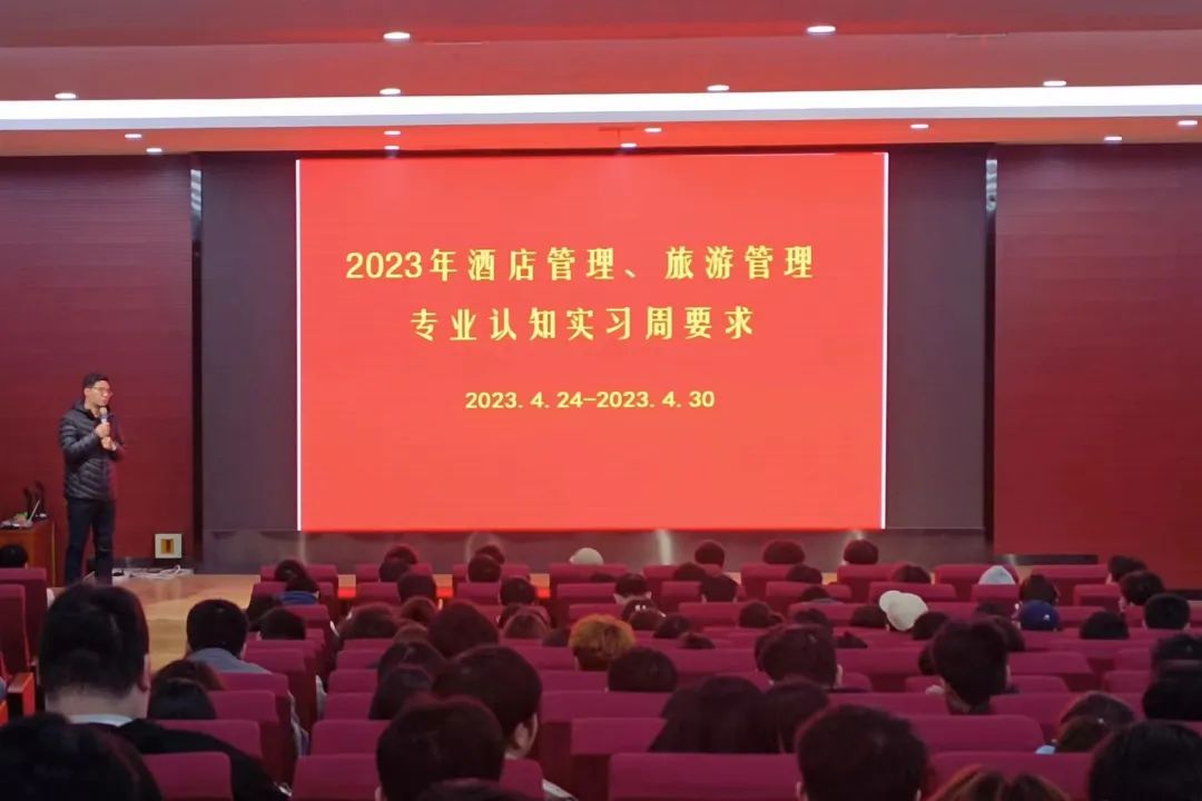 为加强对专业的了解和认识,培养学生们分析解决问题的工作能力。4月24日,食品工程学院于在学院路报告厅进行专业认知实践周动员大会,2022级旅游管理、酒店管理专业同学参加了此次动员大会。