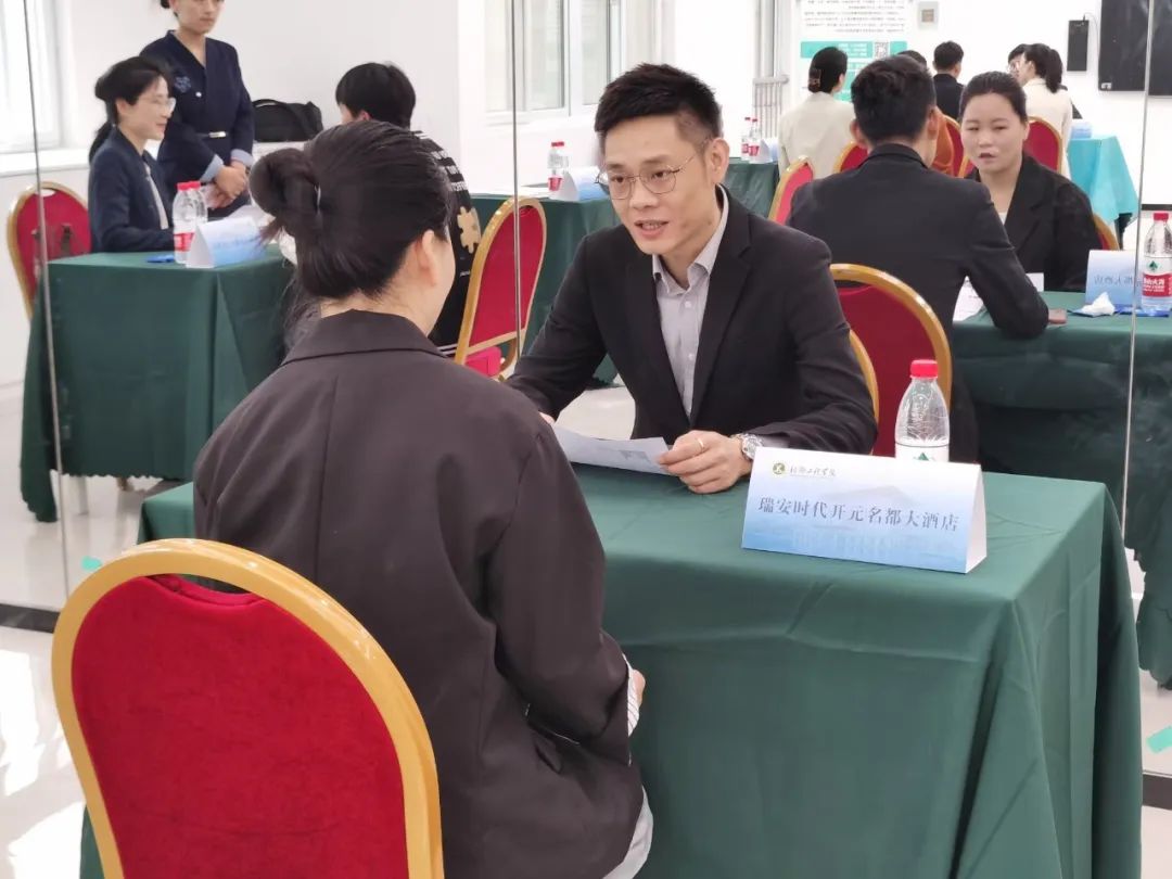 双选会现场气氛热烈,学生热情高涨,积极了解心仪单位情况,同时以饱满的精神,积极向企业展示自己的优势。双选会期间,校长张现周、食品工程学院副院长孙华迪、党总支副书记张晓娜亲临双选会现场,与用人单位和学生亲切交谈,询问企业招聘情况和用人需求,鼓励同学们积极主动应聘,为未来的工作打下坚实基础。