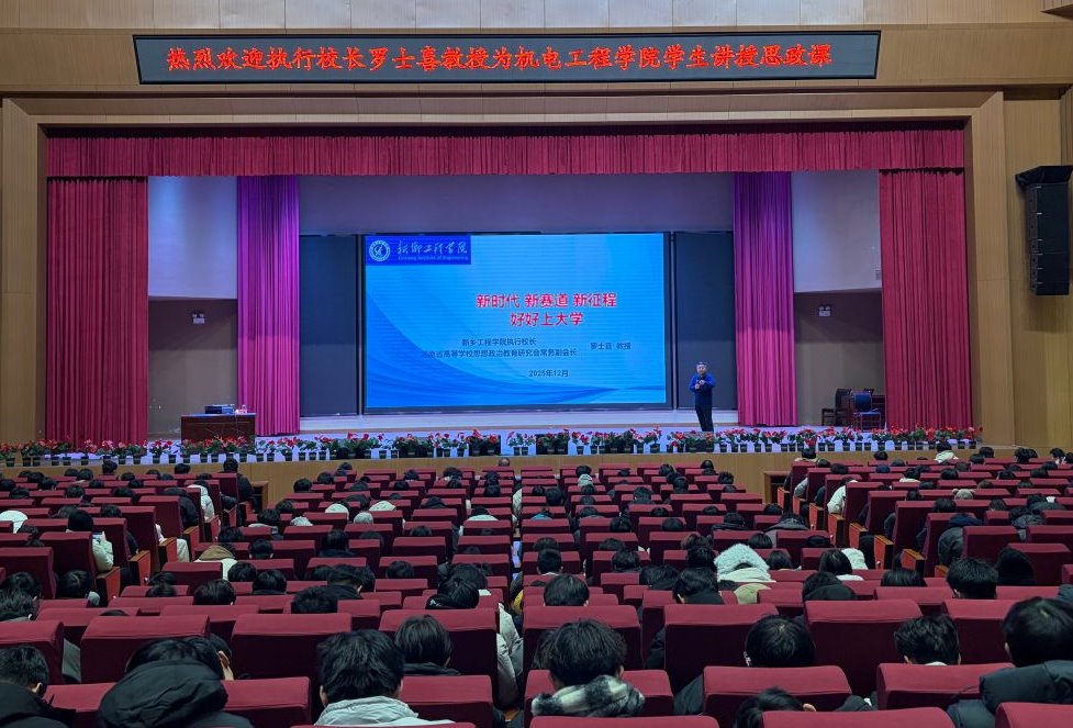 12月12日晚,我校执行校长罗士喜教授在南校区为机电工程学院550余名学生带来了一堂主题鲜明、内涵深刻的思政课。课程聚焦时代发展脉搏,引导学生深刻认识身处“新时代”、立足“新赛道”、肩负“新征程”的历史方位与责任使命。