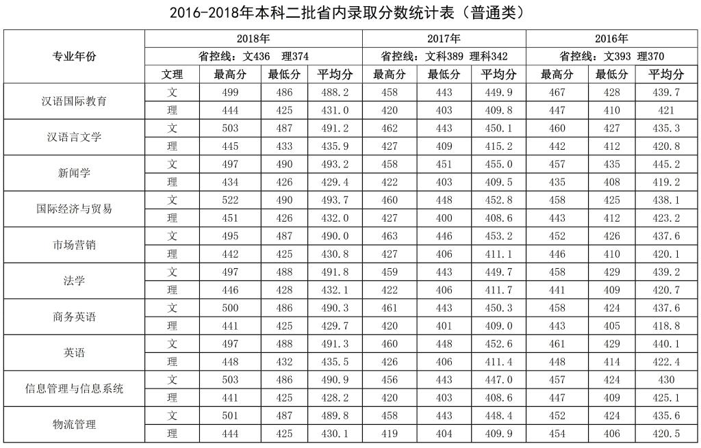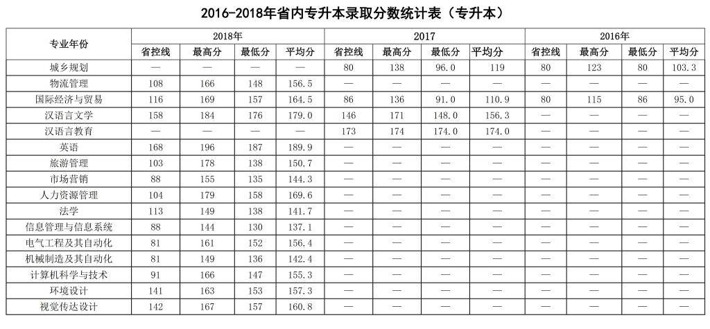 2016-2018年河南科技学院新科学院各专业录取分数统计表