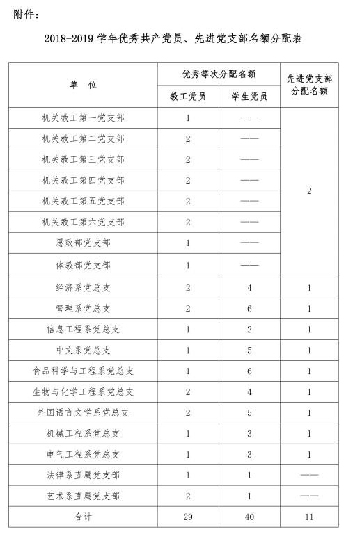 附件:2018-2019学年优秀共产党员、先进党支部名额分配表