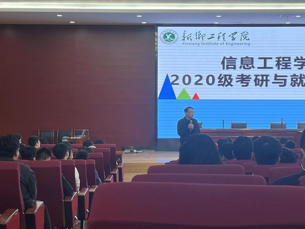 为帮助学生更好了解当前考研及就业形势,储备考研知识,引导2024届毕业生精准把握就业方向,树立正确的就业观、择业观,3月10日下午,信息工程学院在学院楼报告厅举行了2020级考研与就业指导会。副院长秦小平、副书记焦红艳、2020级辅导员张建及2020级全体同学参加指导会。