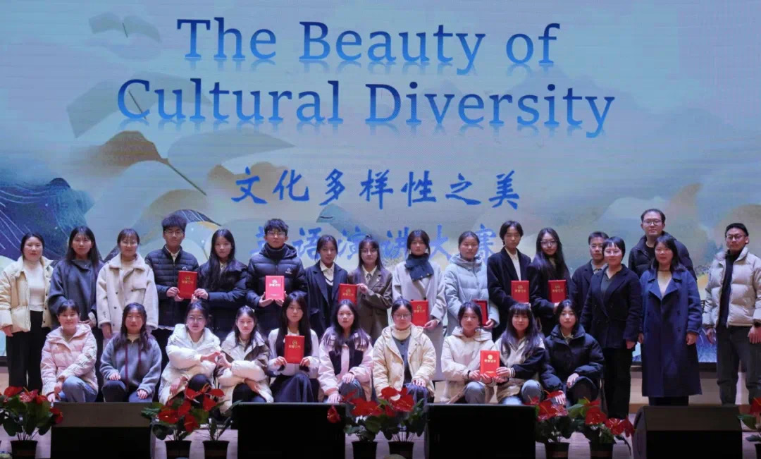 “画中有话·猜趣无限”主题游戏活动考验了同学们的外语能力,激发了他们的创造力和想象力;在“坚定华夏自信·传承优秀文化”主题画报活动中,选手们以中国传统文化为主题,结合外语元素,创作了一系列精美的画报,充分展示了中国文化的魅力;“诠释古今中国”中英翻译大赛考验了选手们的翻译能力,提升了他们的跨文化交际能力;在“异语同声破域关·方寸舞台百花繁”英语话剧决赛中,选手们通过话剧汇演,将外语学习与舞台艺术完美结合,为观众带来了一场视听盛宴;“声韵和鸣·配趣相生”英文配音大赛,不仅锻炼了选手们的口语表达能力,还让他们更加深入地理解了英文原声的魅力;文化节的重头戏是“The Beauty of Cultural Diversity”英语演讲大赛,参赛者们围绕文化多样性这一主题,用英语阐述了自己的观点和见解,演讲内容深刻、语言流畅,赢得了评委和观众的一致好评。活动最终评选出若干奖项,并为获奖学生颁发了证书。