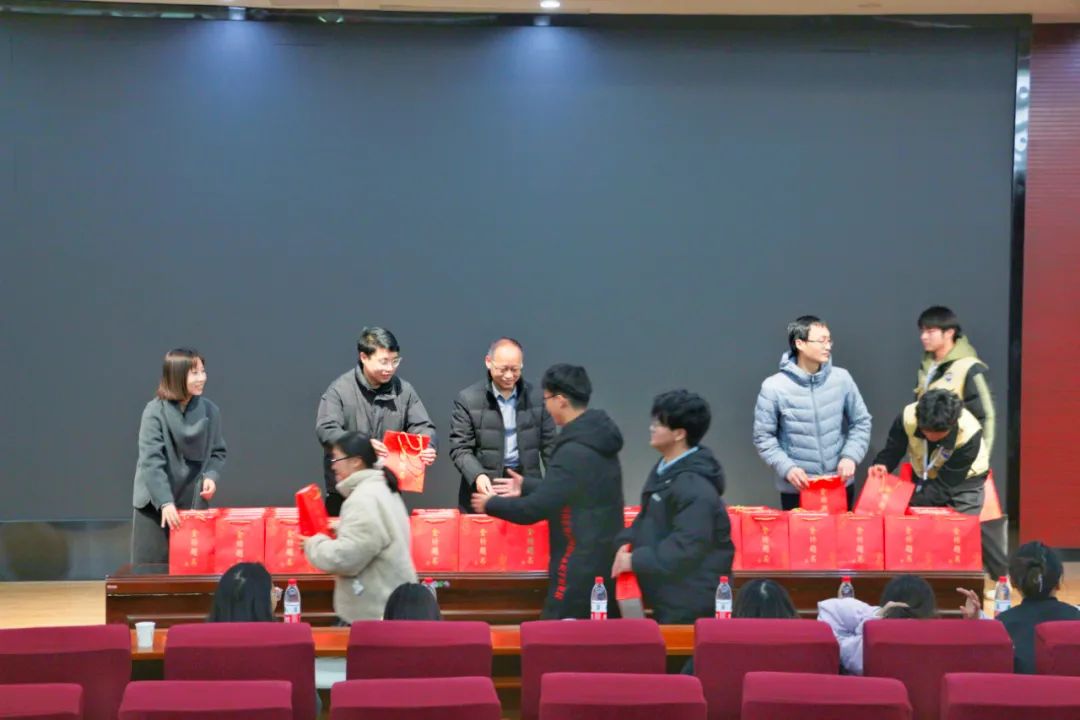 考研加油会在老师及同学们合唱的《稻香》歌声中拉开序幕。牛立元对同学们在备考阶段呈现出的坚定意志和拼搏精神给予充分肯定,对备考同学进行了鼓励和祝福。牛立元还以丰富的教学经验和专业知识,向备考同学分享了考研冲刺阶段重要的学习技巧与心态调整策略。会议现场播放了学院对备考同学的鼓励视频。最后,与会领导老师为每位备考同学发放了学院精心准备的加油礼包。