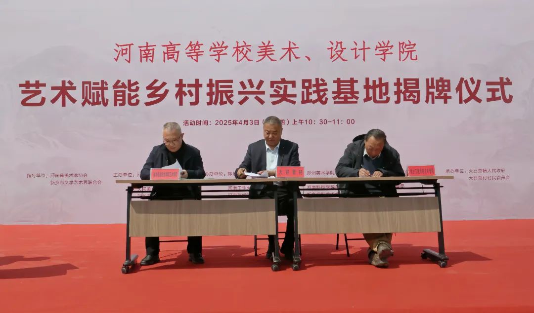 活动现场,河南省学校艺术教育协会、成人网址市文联等相关领导出席并致辞,强调高校艺术教育应主动服务国家战略,通过创意设计、文化传承、产业融合等方式为乡村振兴注入新动能。各高校先后签约,随后河南高等学校美术、设计学院艺术赋能乡村振兴实践基地正式揭牌,标志着“高校艺术+乡村资源”的深度合作模式迈入实质性阶段。