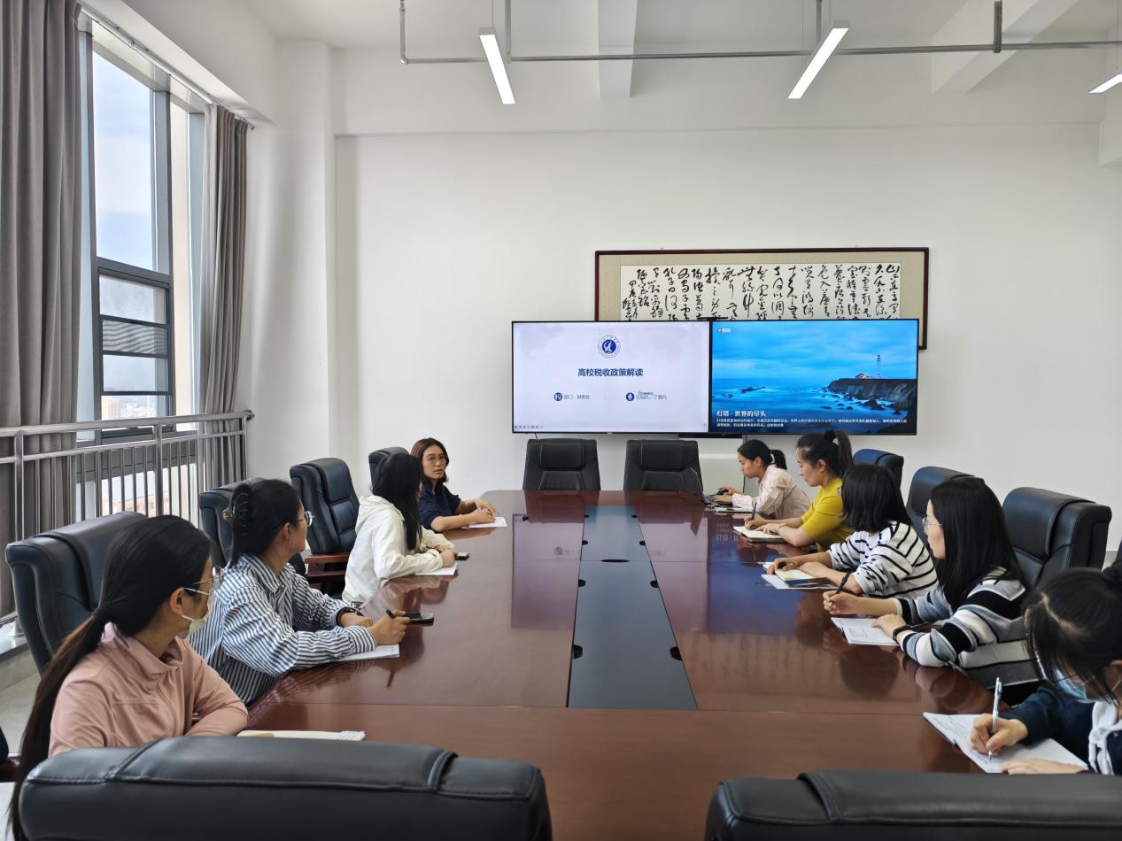 4月29日下午,财务处以“税助发展 向新而进”为主题,在图书馆1027会议室举办高校税收政策解读专题学习会。财务处财务岗全体人员参加学习,会议由财务处负责人翟兰杰主持,会计核算科丁超凡作税收政策解读分享。