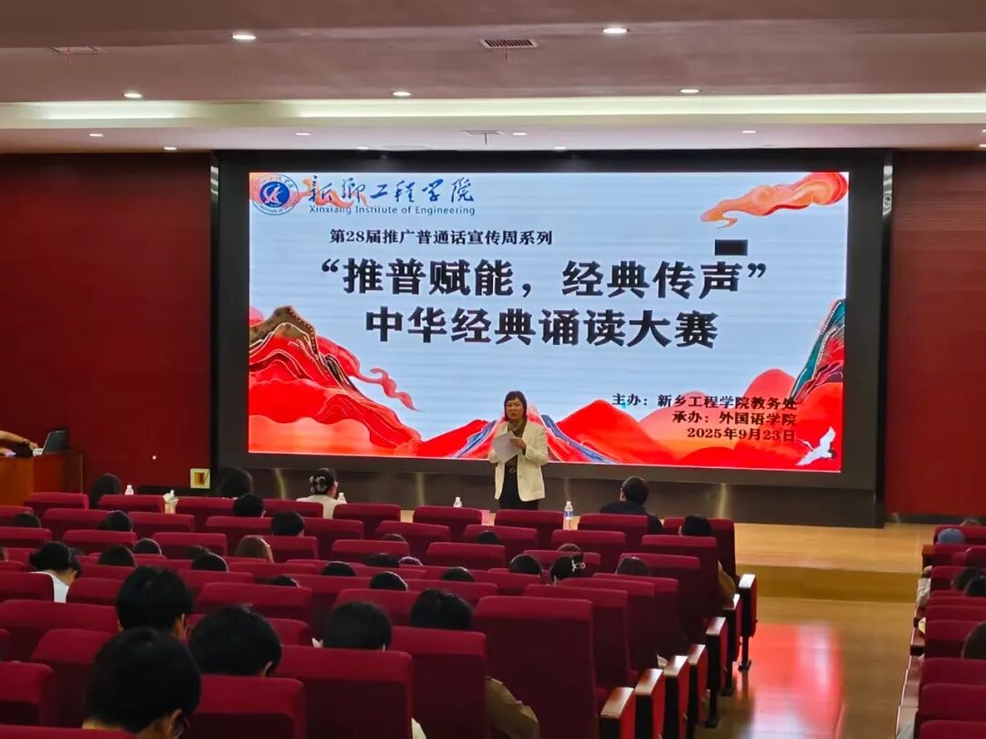 为加大国家通用语言文字推广力度,促进铸牢中华民族共同体意识,引导师生在经典浸润中提升语言文字应用能力与文化感悟力,由教务处主办、外国语学院承办的“推普赋能,经典传声”中华经典诵读大赛决赛于9月23日在学院楼报告厅成功举办。