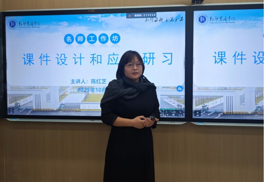 10月15日,我校教师发展中心在教学楼3-510智慧教室组织开展了“课件设计和应用研习”专题工作坊。此次培训特邀河南省优秀教师、河南省学术技术带头人、河南省本科高校教师课堂创新大赛一等奖获得者陈红芝担任主讲嘉宾,为青年教师授课。