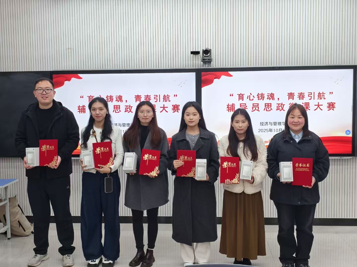 活动自开展以来,我院辅导员精心打磨思政课程,多视角引导学生们践行社会主义核心价值观,提升运用新媒体开展思政教育的能力。辅导员的参赛作品有着题材多元、视角细腻、价值鲜明的特点,以“小切口”承载“大主题”,通过师生真实的言行、日常的细节,让理论学习有了“生活的温度”,让文化传承有了“青年的表达”,也让价值引领真正走进了学生的心里。本次比赛从教学内容、教学方法、现场表现、教学效果等多个维度对选手进行了综合评判,最终评选出一等奖2名、二等奖6名、三等奖若干。