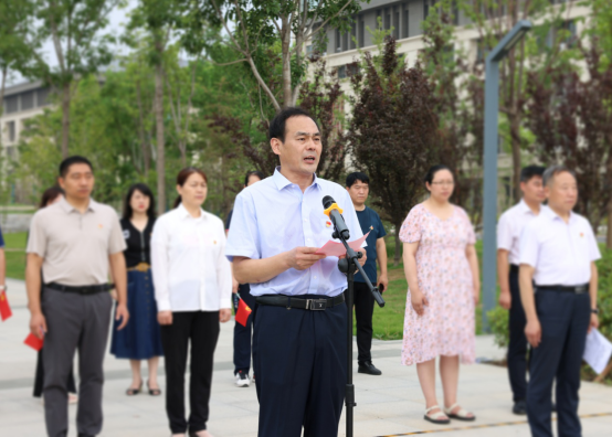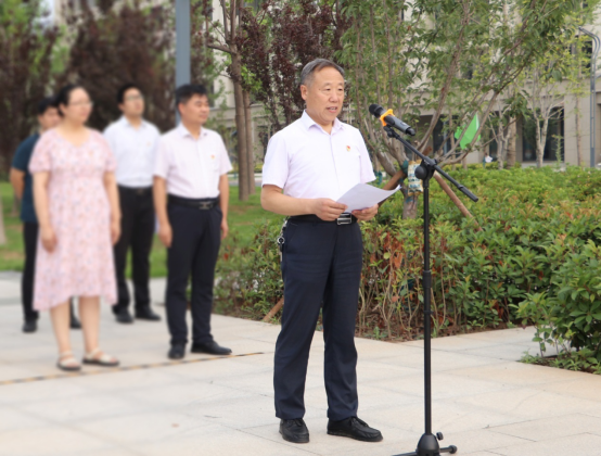 党委书记张忠迪发表了讲话,他带领大家一起重温了中国共产党的辉煌历程,阐述了共产党人的初心和使命,结合党史学习教育,提出了三点希望和要求:一是要铭记为民服务的“初心”。站在建党100周年的重要历史节点,要接过革命前辈手中信仰的接力棒,把“初心”二字刻在心里,重整行装再出发;二是要坚定走向未来的“信心”。坚定信念,勇往直前,以实现中华民族伟大复兴的中国梦为己任,做好新征程上开拓进取的奋斗者;三是要立下干事创业的“决心”。尤其是青年学生党员要做社会主义建设者和接班人,不断干事创业,强化使命担当,在披荆斩棘中开拓进取,在攻坚克难中砥砺前行。