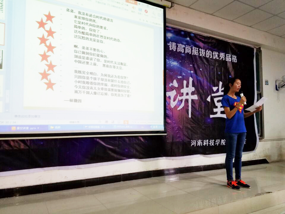 5月11日下午,信工系在12号教学楼合七教室举办了以“富强、民主、文明、和谐——我的中国梦”为主题的“星空讲堂”,信工系全体教师及2016级学生参加了此次活动。