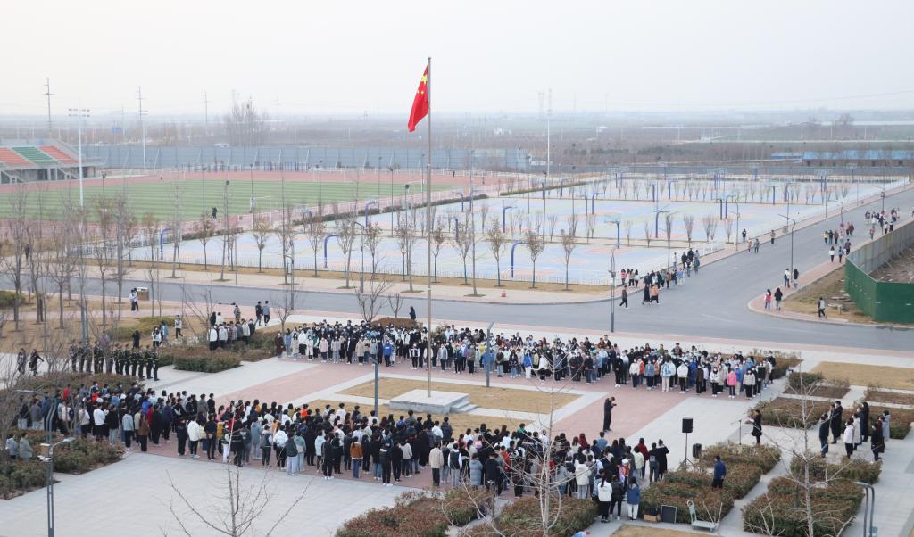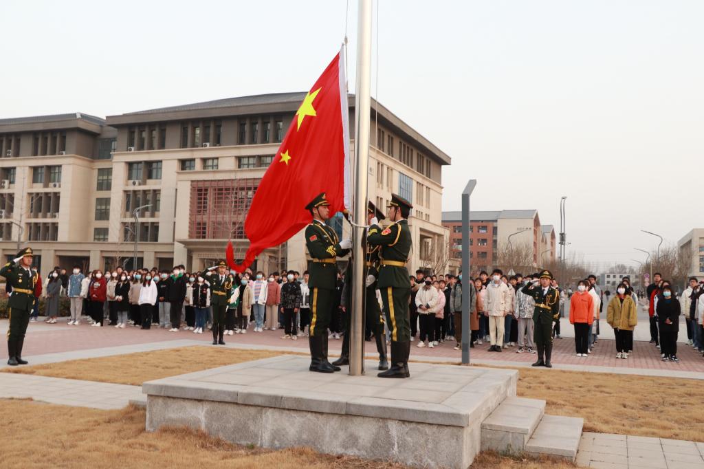 为进一步加强爱国主义教育,激励新学期奋勇拼搏斗志,3月7日,我校举行了以“凝心聚力开新局 携手奋进向未来”为主题的新学期首次升旗仪式。校党委副书记张慧辉、校长助理张永福出席,党政办、宣传部、学生处、团委、思政部等部门负责同志,各学院党总支负责同志以及学生代表400余人参加。升旗仪式由党政办负责人主持。