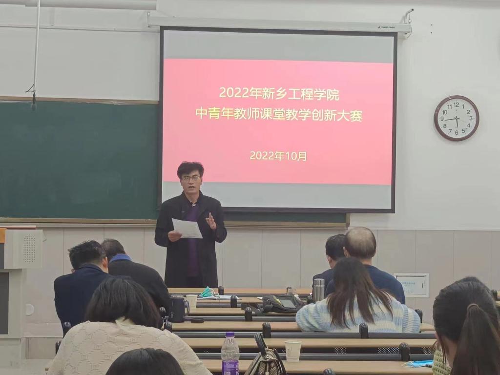 为贯彻落实全国全省教育大会精神,不断提高教师教育教学创新能力,按照省教育厅《关于举办第四届河南省本科高校教师课堂教学创新大赛的通知》要求,10月14日,我校在学院楼B-110教室举办了2022年中青年教师课堂教学创新大赛,共7名教师参加了比赛,部分教师和学生代表观摩了本次比赛。