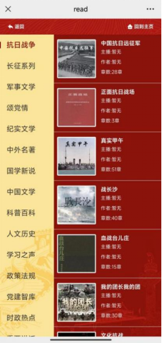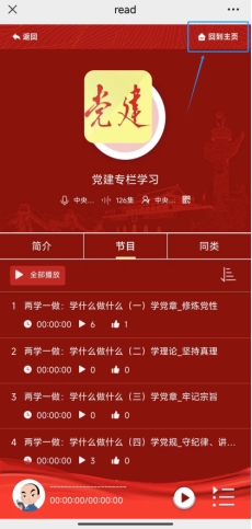 2.通过扫描下方微信二维码,点击“回到主页”,在主页中通过具体分类选择要听取的读物,或通过搜索精确查找读物。(仅限校内使用)