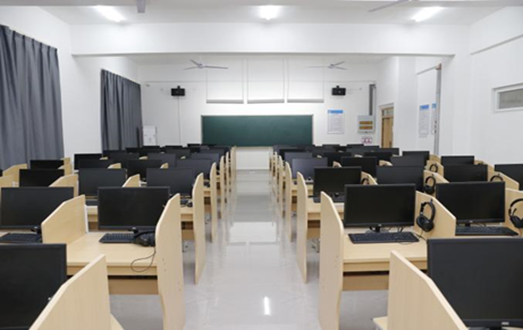 外国语学院现有9个语音室和1个跨境电商实训室,同声传译实训室和虚拟仿真实验室正在建设中。目前实验室建筑面积1200余平方米,仪器设备740余台套,含有云课堂外语平台、跨境电商实务实习平台、国际商务综合英语实训系统等丰富外语教学资源,总价值358.76万元,实验室设备先进,实践教学条件完善,为学生语言能力和实践能力的培养与发展创造了良好的条件。