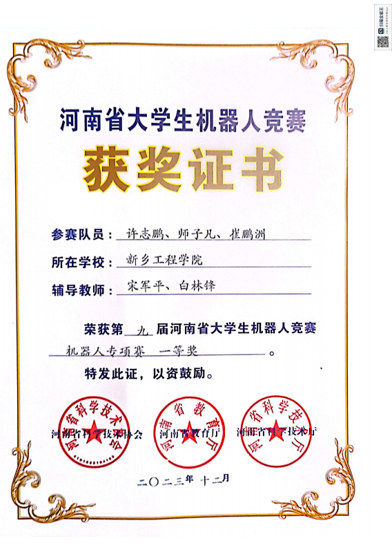 近年来,学生先后在全国大学生电子设计竞赛、“挑战杯”大学生课外学术作品竞赛、“蓝桥杯”全国软件和信息技术专业人才大赛、大学生机器人竞赛等比赛中荣获国家二等奖4项、三等奖10项;河南省一等奖78项、二等奖114项;完成河南省科技成果鉴定1项,申请软件著作权3项。