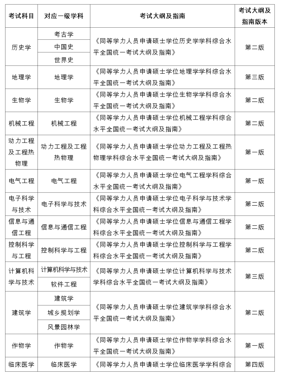同等学力人员申请临床医学、口腔医学和中医硕士专业学位学科综合水平考试科目、考试大纲见附件3,临床医学仍按原16个科目考试。